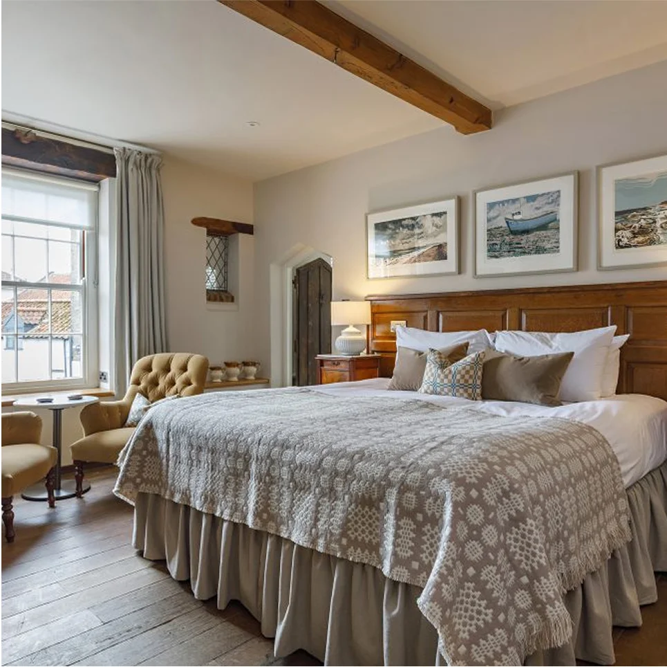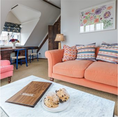 Room 6 has undergone a complete transformation, including a reimagined entrance that allows for a far more expansive and luxurious layout. The result is a spacious top-floor sanctuary, nestled in the eaves and brimming with charm and comfort. A highlight of the redesign is the impressive new bathroom suite, featuring a statement bath, along with a separate, beautifully finished shower room.
