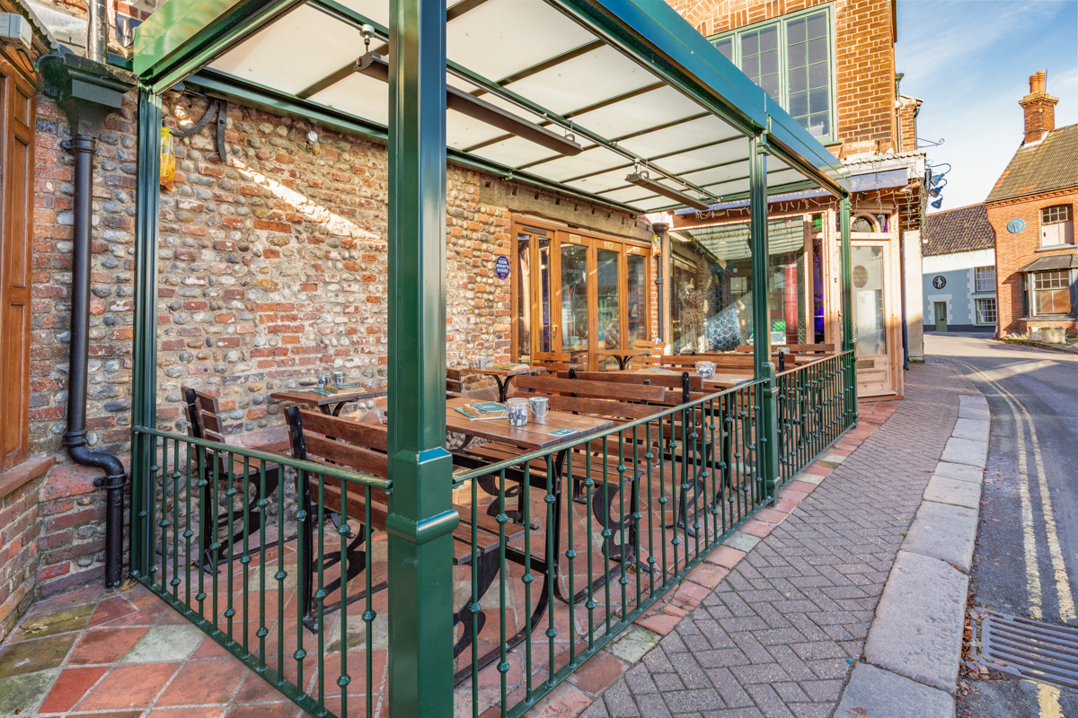 After 25 years of serving you al fresco, we’ve given our outside area a well-deserved upgrade. We have six covered outdoor tables, now ready for use all year round thanks to infra-red heating for warmth, retractable blinds for when the weather turns, and shading for those sunny days. It’s a cosy, comfortable space whatever the season — and it's dog-friendly too!