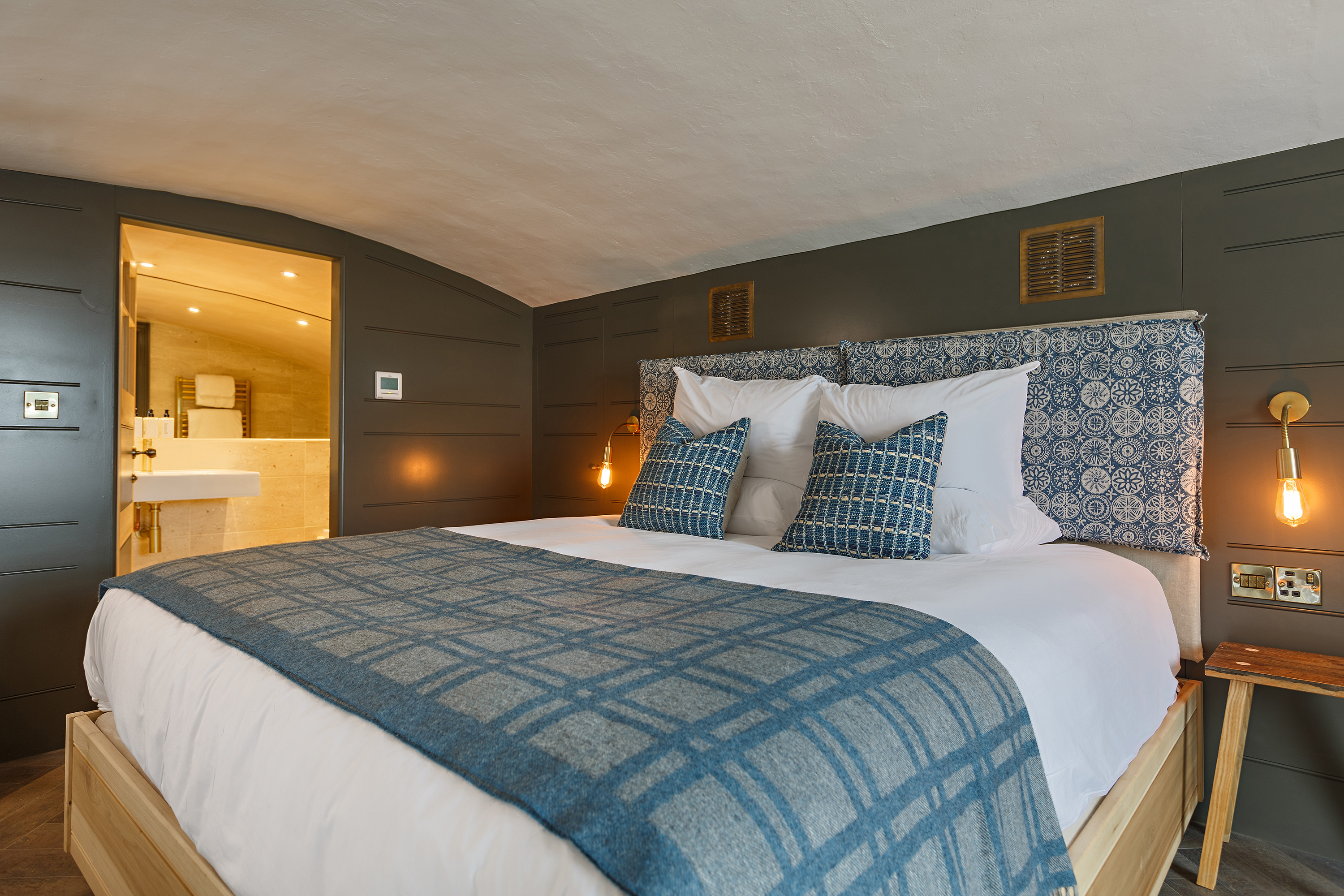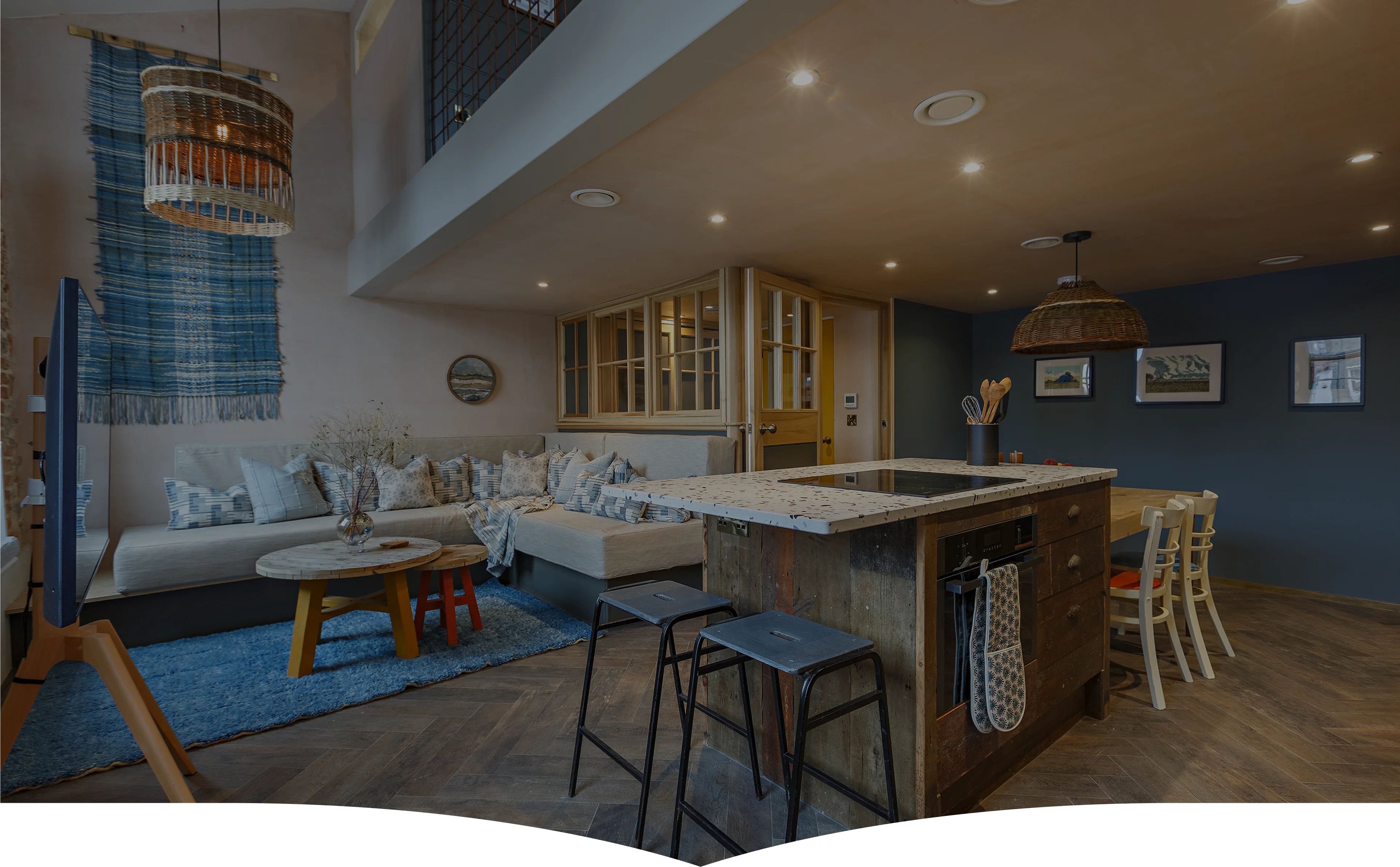Indigo is a one-of-a-kind apartment, flooded with natural light and full of unexpected charm. Rich, inky tones meet exposed brick and flint, giving a playful nod to the building’s Georgian past while keeping things effortlessly stylish. Upstairs, a six-foot Vispring bed promises the dreamiest sleep, while a sunken bath and shower room add a splash of luxury. Downstairs, the handmade kitchen is made for grazing, sipping, and slow suppers, complete with a Nespresso machine for those early morning cuppas.