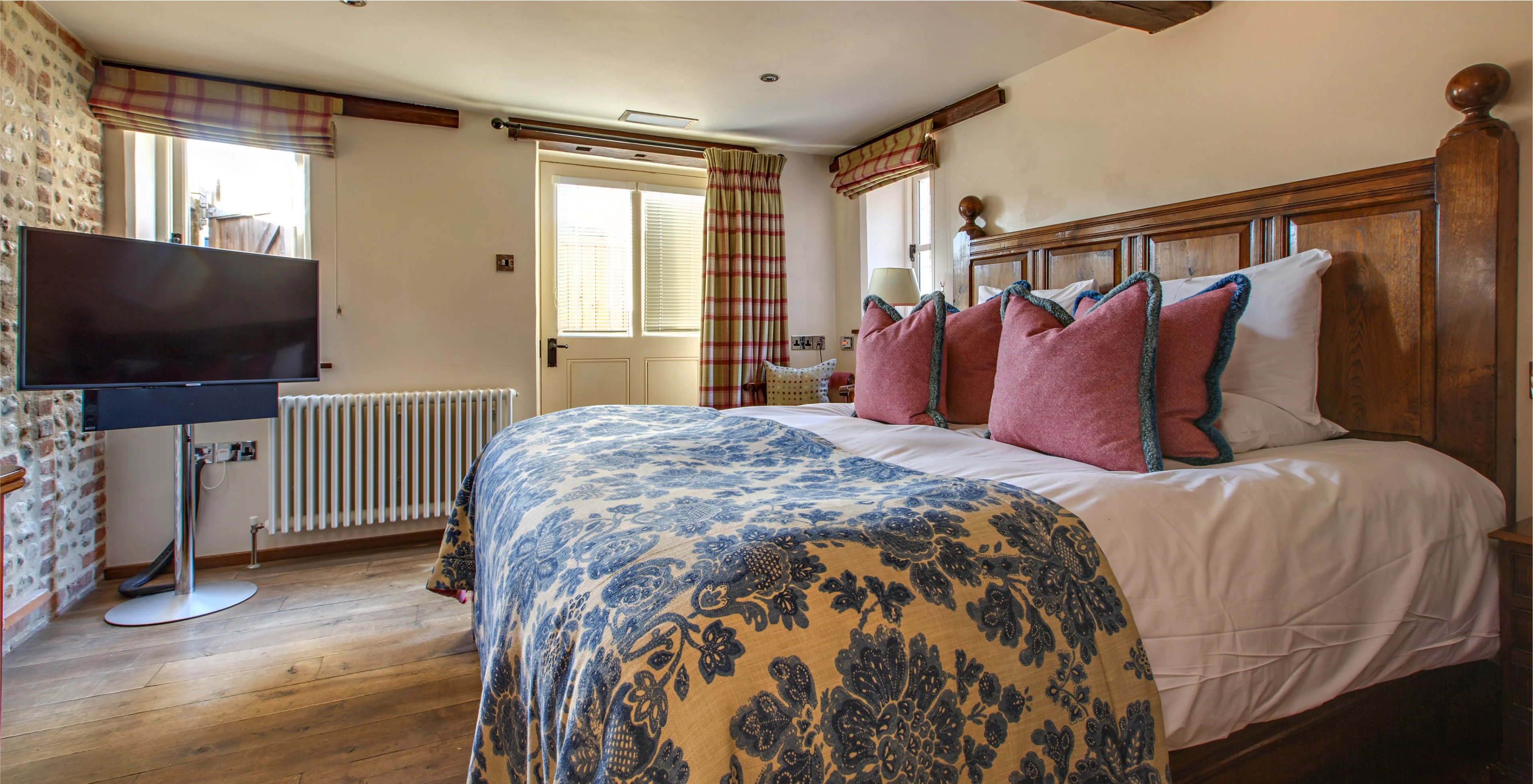 Tucked just off the car park and steps from the independent shops of Chapel Yard, Room 11 is a cosy bedroom with a dash of Byfords quirk. Exposed brickwork and wooden beams add character, perfect for a romantic retreat. The en-suite is a real treat: a double-ended bath, twin sinks and a drench shower for long, lazy soaks after a day exploring Holt. It’s everything you need for a comfortable stay, wrapped up in Georgian charm.