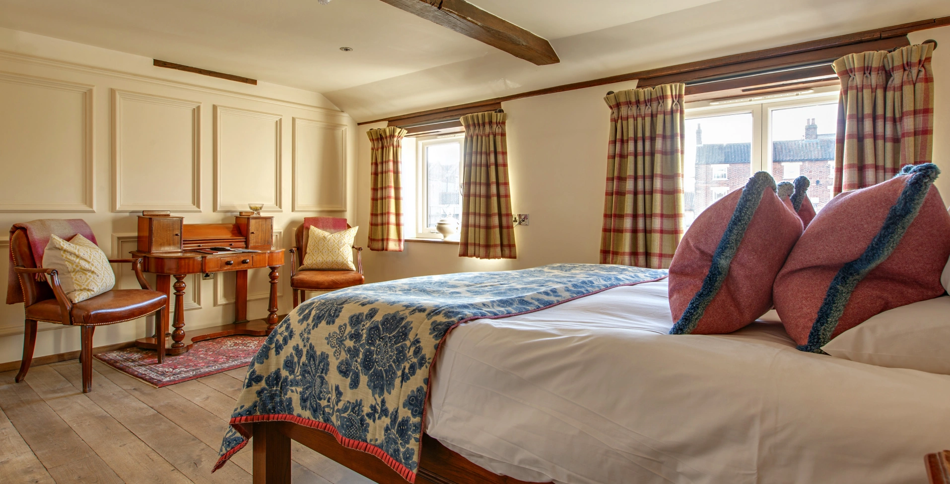 Looking for the perfect base to explore North Norfolk? Room 12 has you covered. Set on the first floor, this large and beautifully bright B&B room is made for slow mornings, seaside returns and everything in between. Sunlight pours in through the day, and beautifully panelled walls add a dash of classic Byfords charm. After a day out exploring the coast or pottering around Holt, sink into the Vispring bed or enjoy a soak in the tub.
