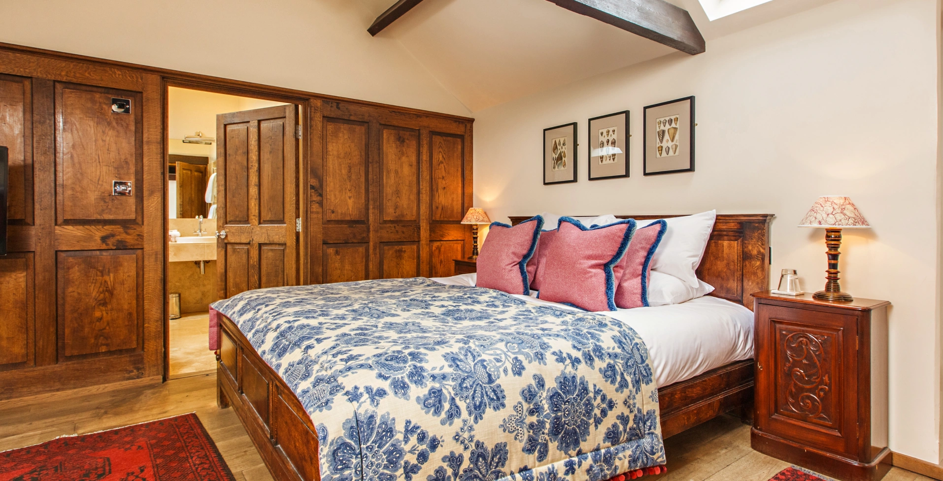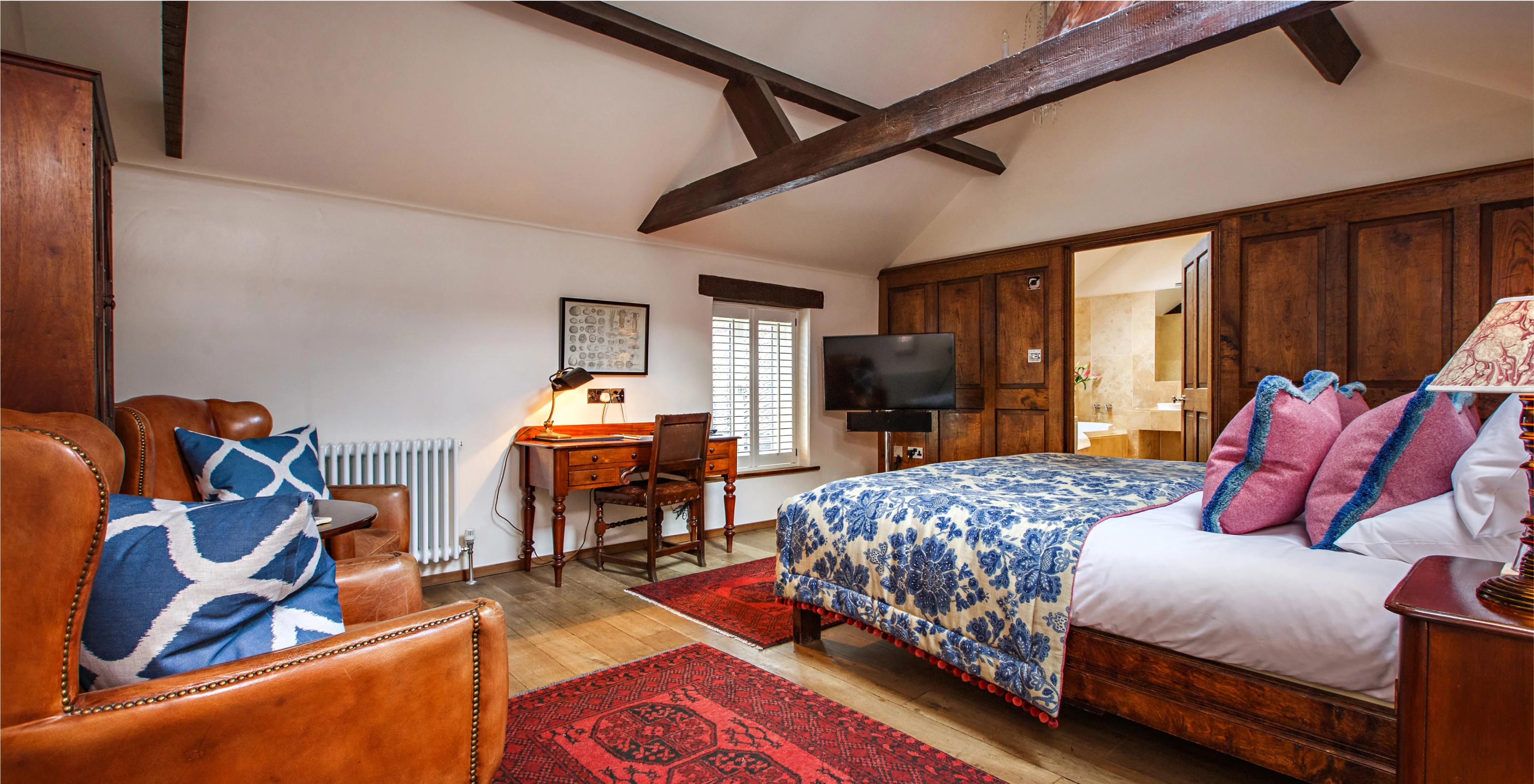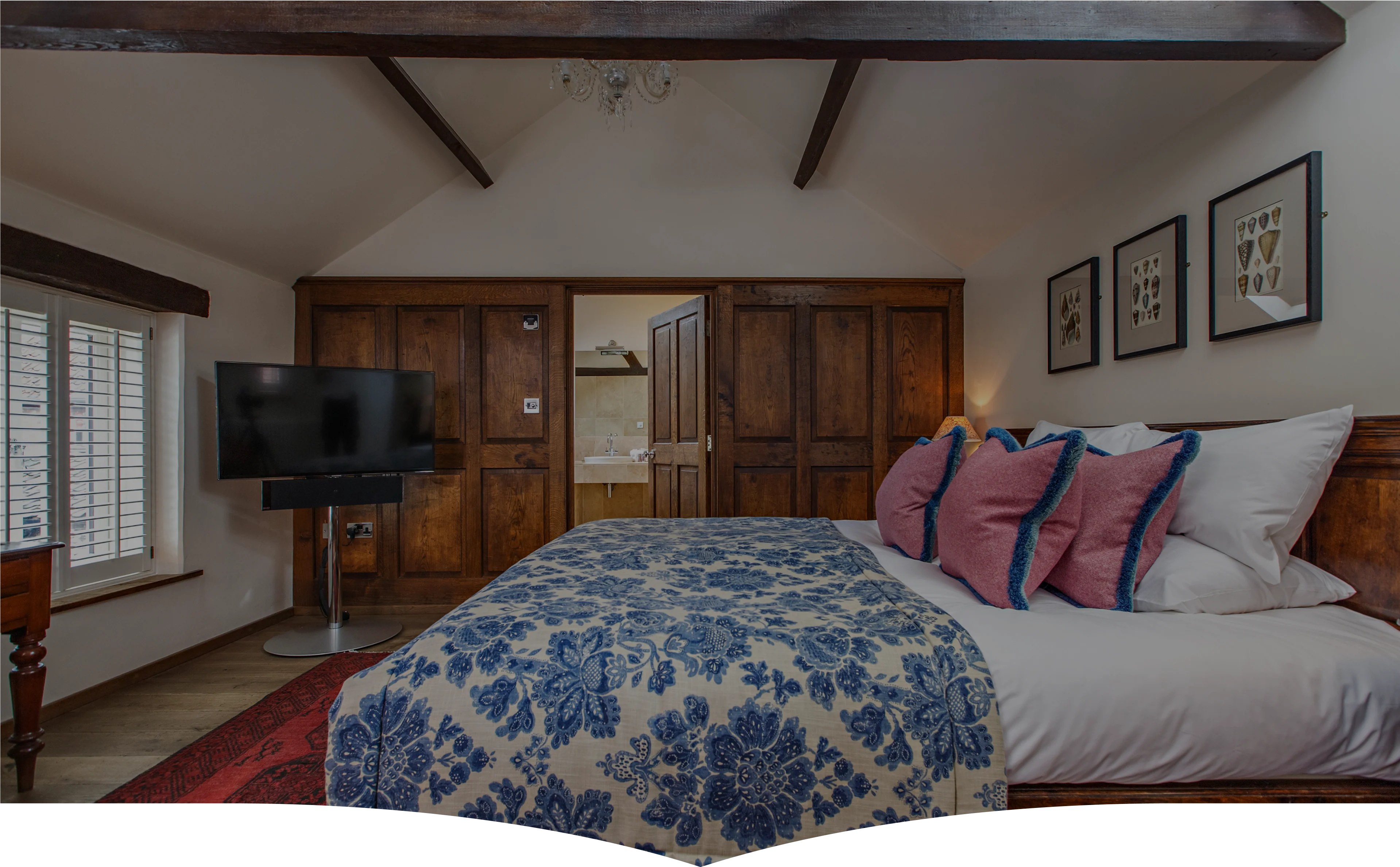 Room 16 is a spacious room with a healthy dose of Byfords quirk. Two chandeliers and matching table lamps add a touch of grandeur, while playful details and coastal touches keep things stylish and relaxed. The en-suite is one of our largest, featuring a double-ended bath, a walk-in drench shower, and twin sinks for leisurely mornings. Add crisp Egyptian cotton linen, a luxurious Vispring bed, and an entertainment system with bathroom speaker, and you’ve got a space made for the perfect stay.