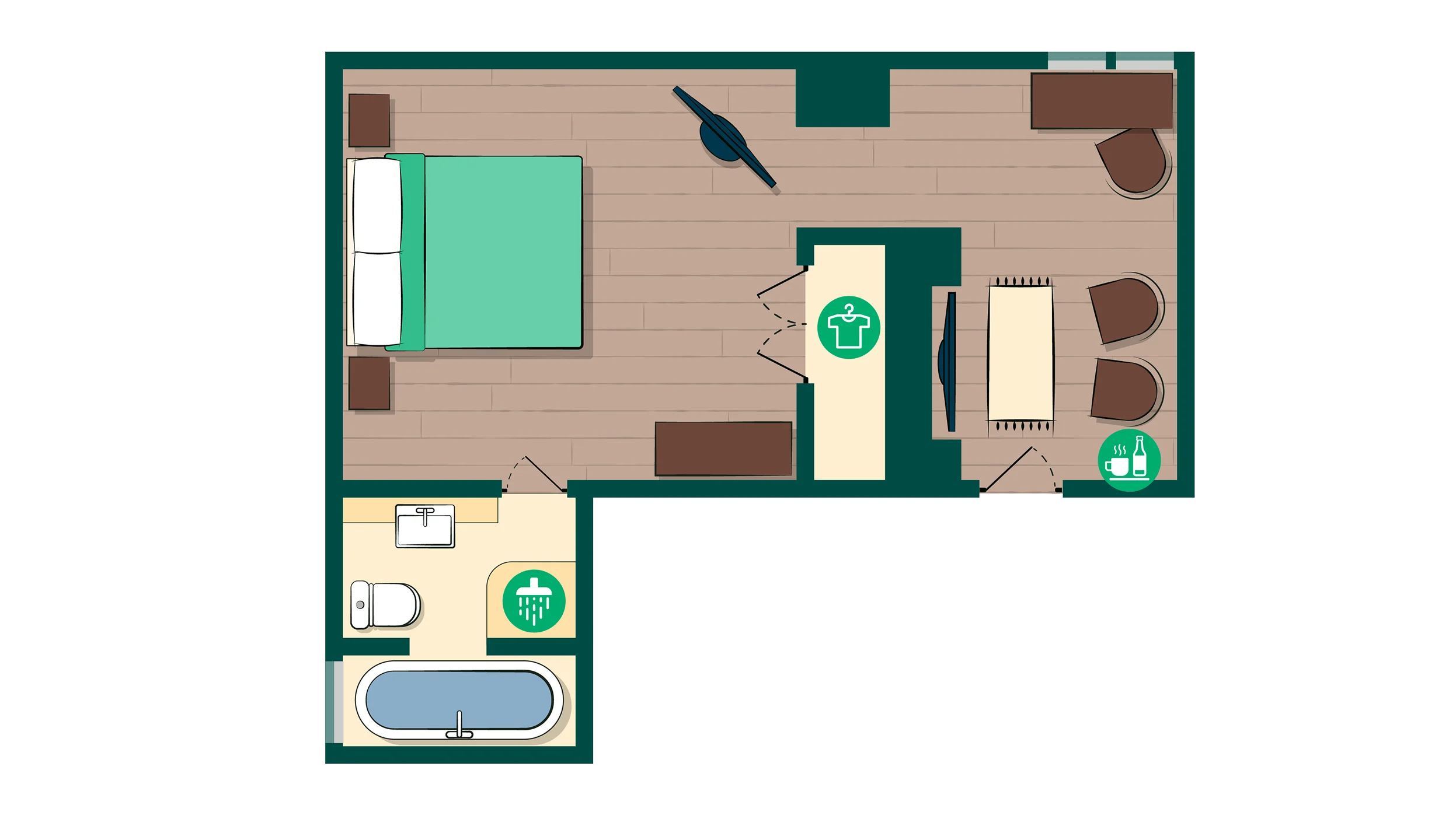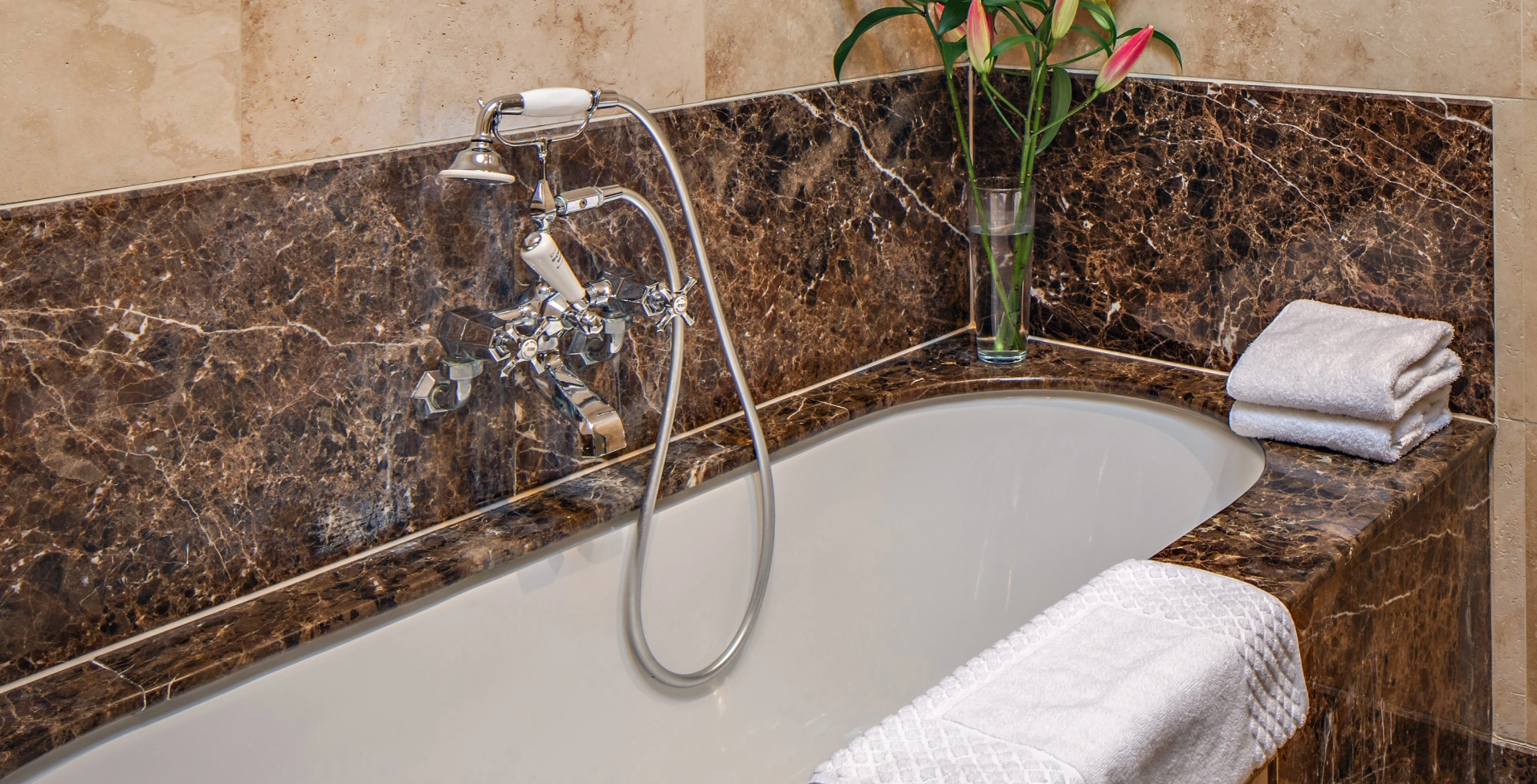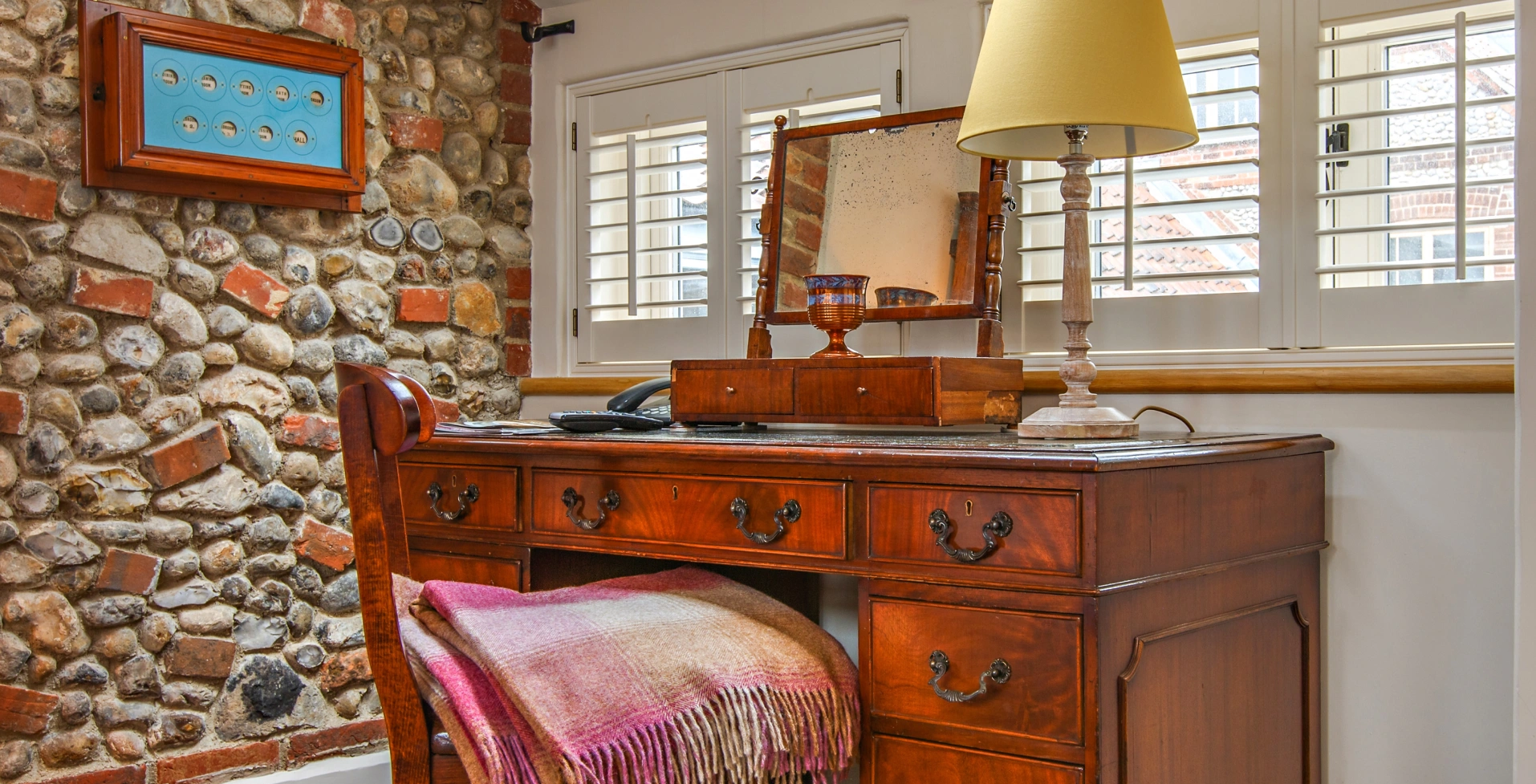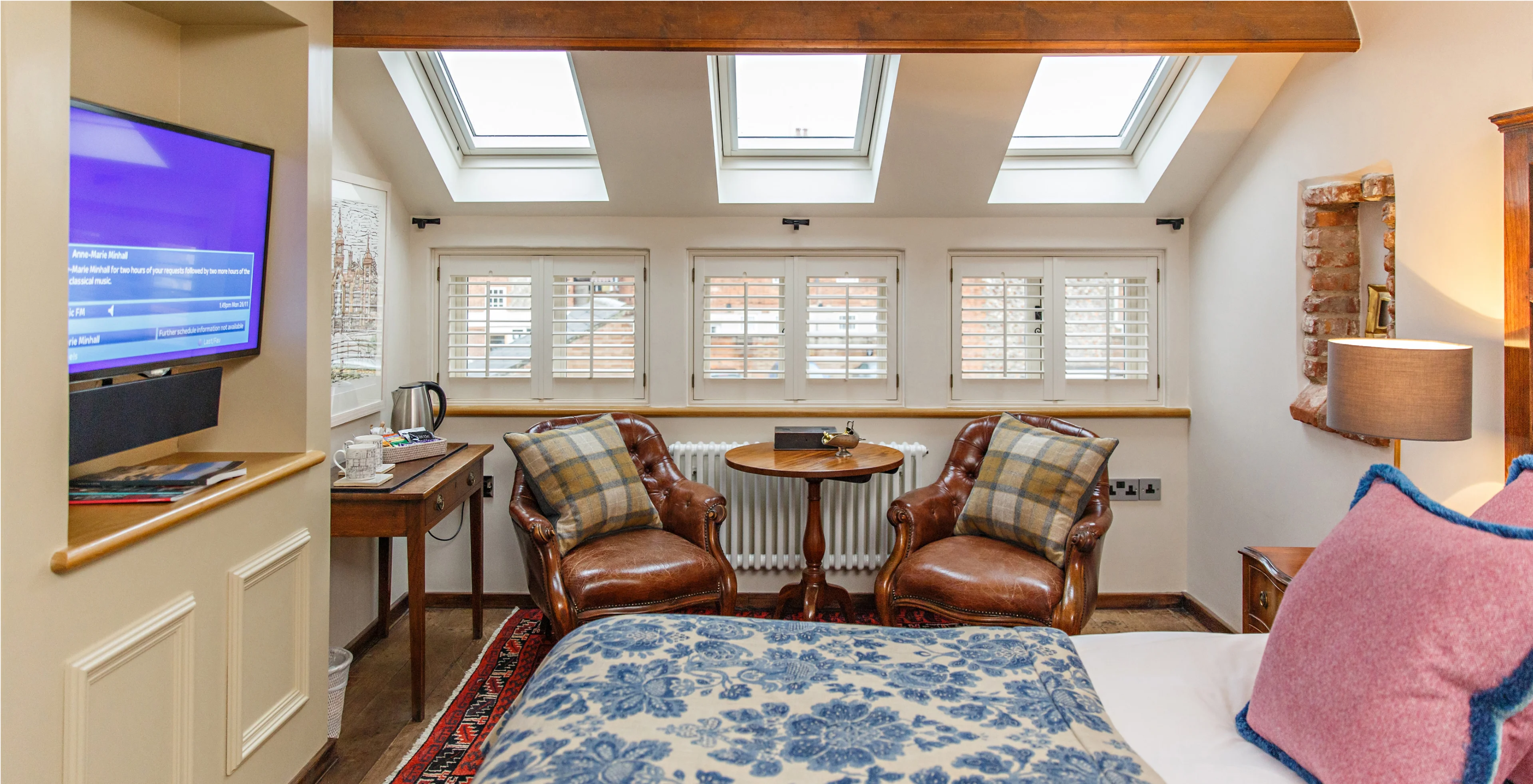 Welcome to Room 9, a beautiful space brimming with character and comfort. Bathed in natural light from its double-aspect windows and high ceilings, it’s one of the brightest spots in the building, perfect for early risers, bookworms, or anyone who enjoys a bit of Norfolk sunshine with their morning cuppa. The en-suite bathroom, adorned with striking brown and limestone marble, adds to the room's unique charm. Whether you prefer a leisurely soak in the dual-bathing tub or a refreshing drench shower, this bathroom caters to your relaxation needs.